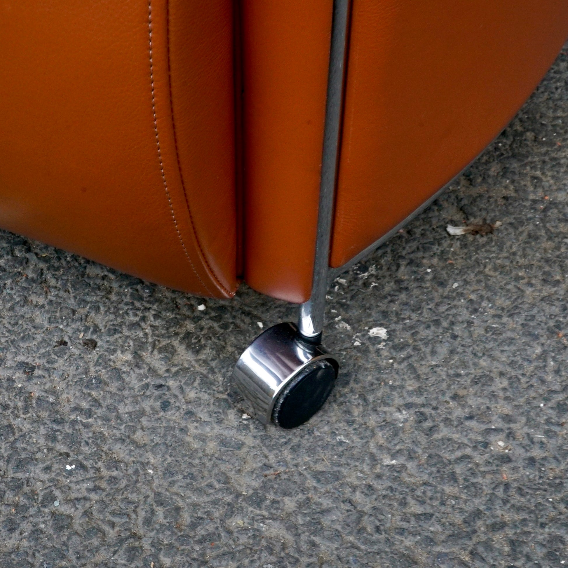 Italian Leather Chair in burnt orange with chrome details and 4 wheels for ease of movement. Some age related wear and marks as pictured.