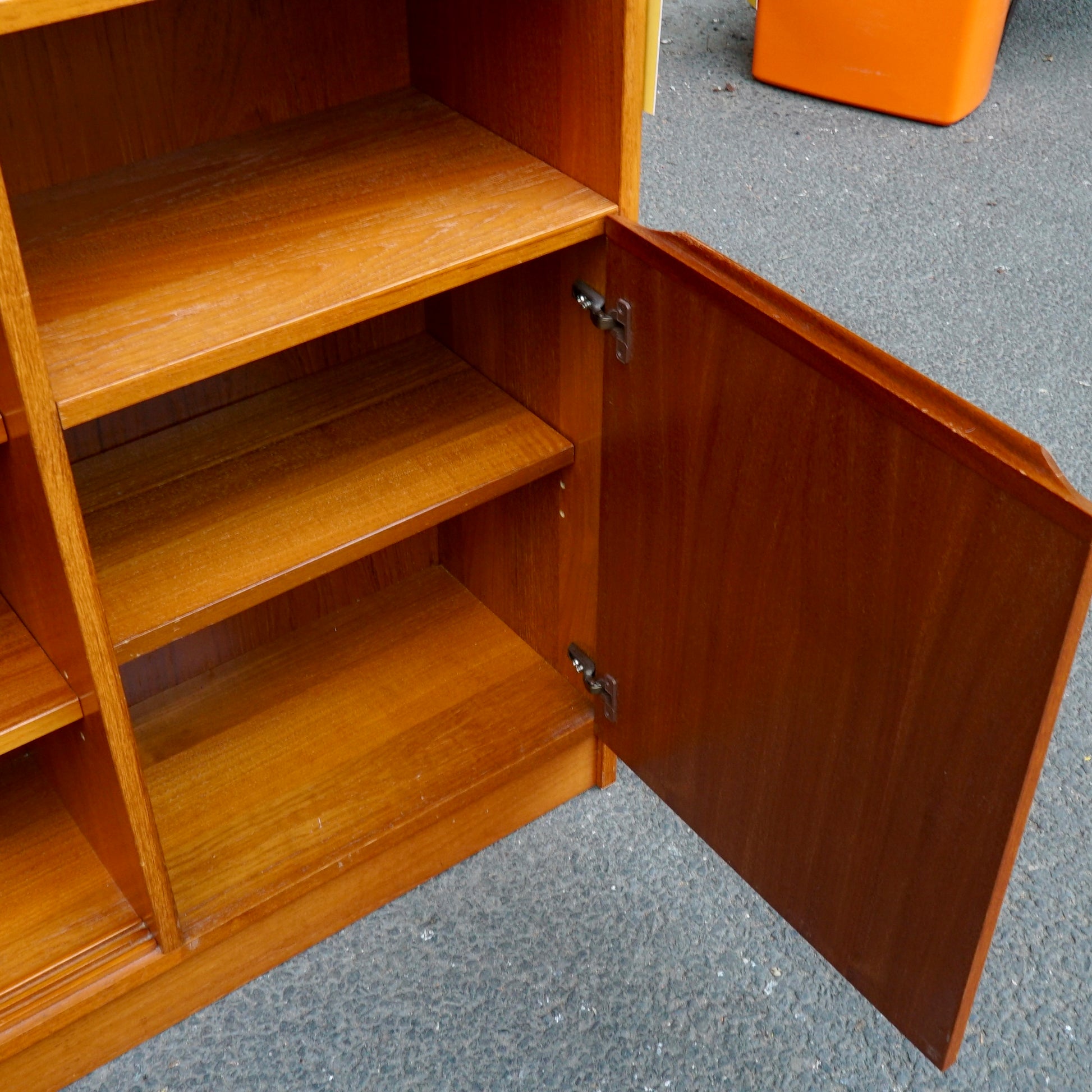 Midcentury Herbert E Gibbs Slim Sideboard in good condition with some age related wear.